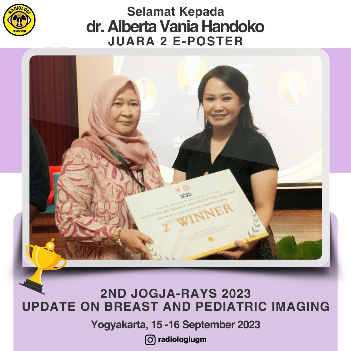 Selamat kepada PPDS Radiologi FK-KMK UGM yang telah memenangkan Lomba E-Poster pada 2nd JOGJA-RAYS 2023 “Update on Breast and Pediatric Imaging”